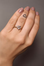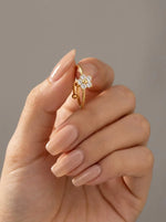 Pozlátený prsteň so zirkónmi v tvare kvetu. Dopraj si elegantný doplnok, ktorý rozžiari tvoj štýl a dodá jemný lesk každému outfitu.