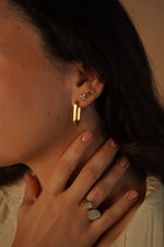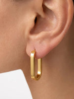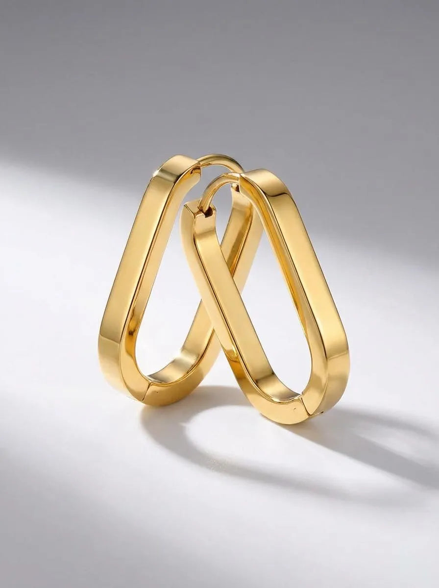 Pozlátené oválne náušnice s moderným geometrickým dizajnom. Minimalistický doplnok, ktorý dodá tvojmu outfitu eleganciu a štipku odvahy.