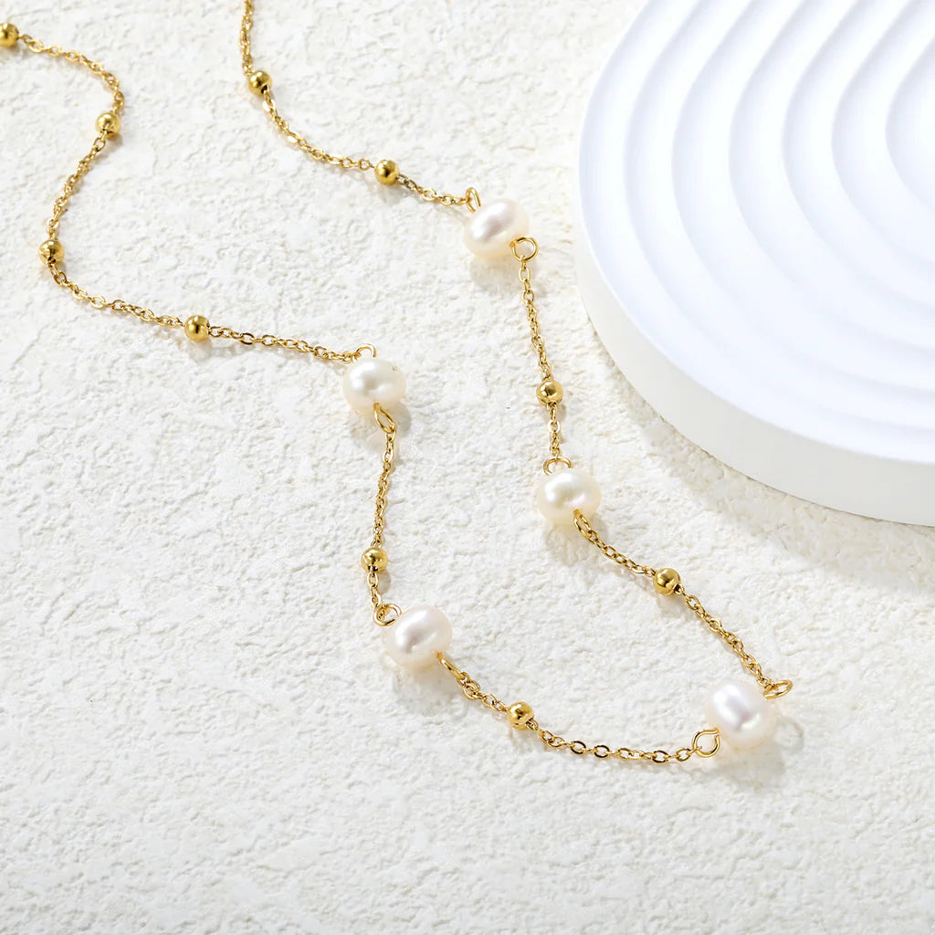 Elegantný pozlátený náhrdelník so sladkovodnými perlami. Nadčasový doplnok, ktorý dodá tvojmu štýlu jemnosť a prirodzený lesk.