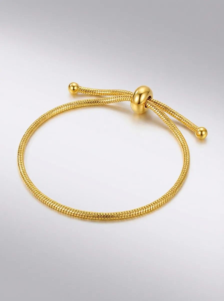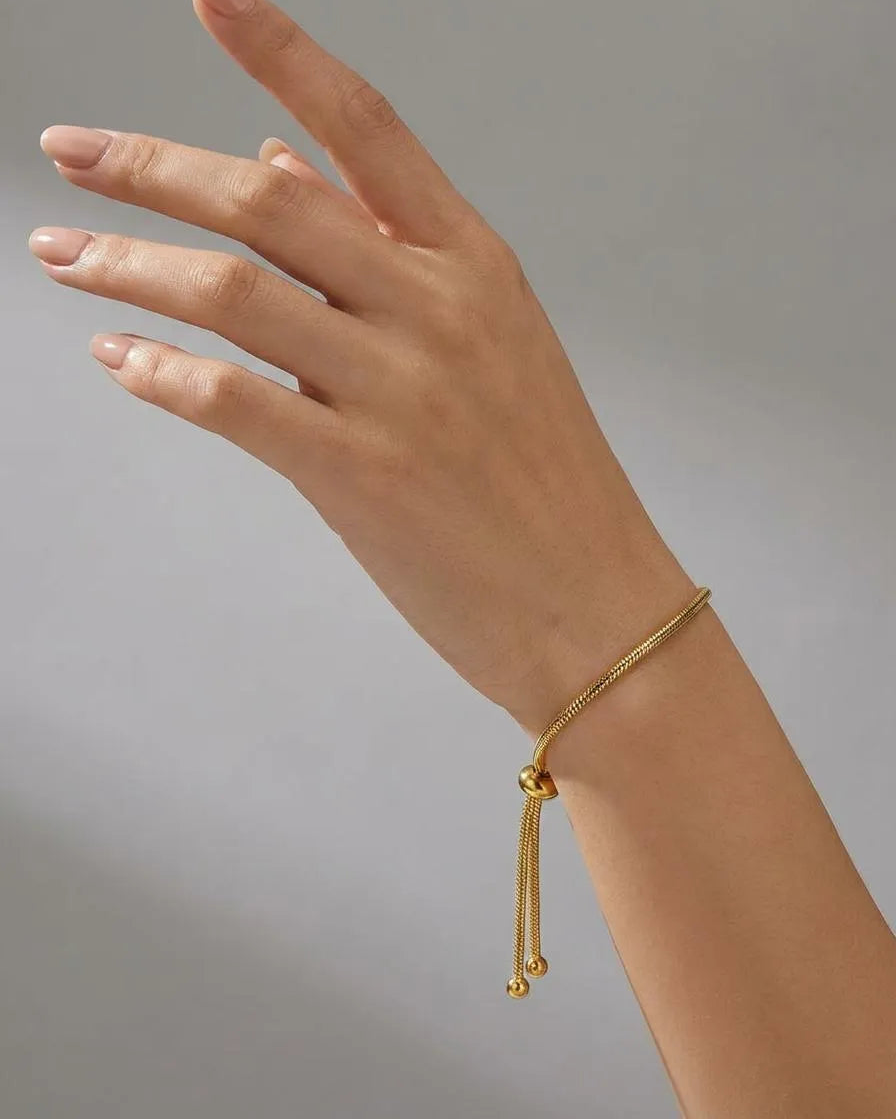 Pozlátený nastaviteľný náramok s hladkou štruktúrou. Minimalistický kúsok, ktorý elegantne doplní každý outfit od bežného dňa až po večerný look.