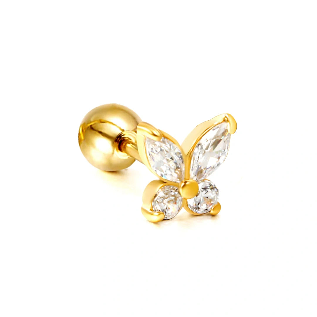 LYSFLYN Pozlátené piercingová náušnica do ucha so zirkónmi