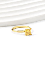Pozlátený prsteň so žltým zirkónom v tvare štvorca. Tento elegantný prsteň rozžiari tvoj vzhľad teplým leskom a prinesie doň slnečný nádych.
